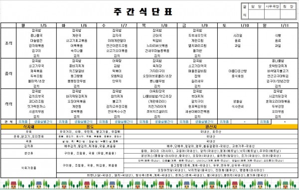 2026년 1월 둘째주식단표 > 식단표