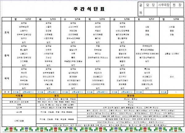 월별식단표