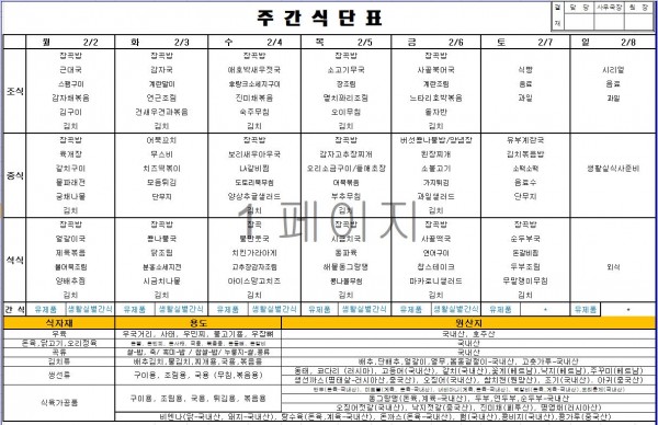 2026년 02월 첫째주식단표 > 식단표