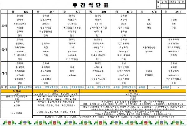 2026년 04월 둘째주 식단표