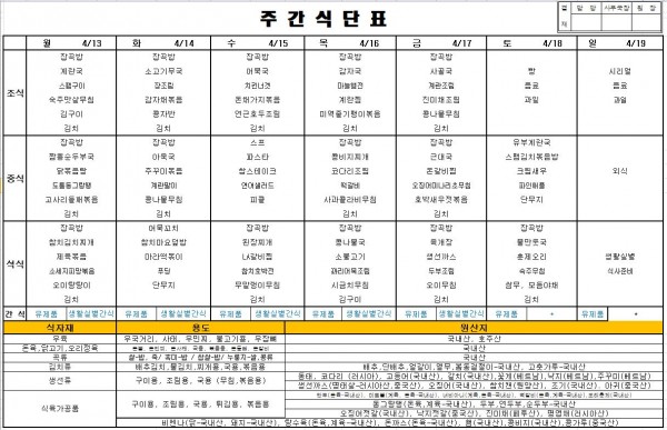 2026년 04월 셋째주식단표 > 식단표